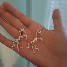 There’s always such magic and majestic mystery surrounding the unicorn, a mythical creature believed to symbolize miracles, wisdom, innocence and purity. Take all those values — and add an edge — by stripping away all the flesh. Make a statement with our Unicorn Skeleton Earrings — and redefine what the horned creature means to you.
